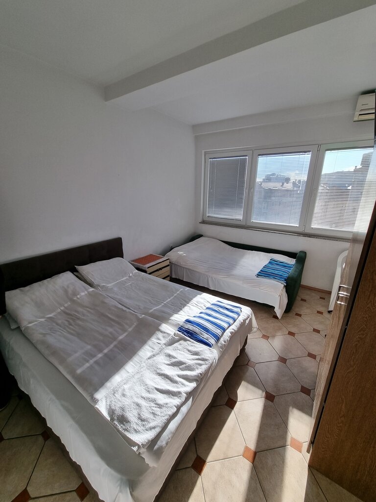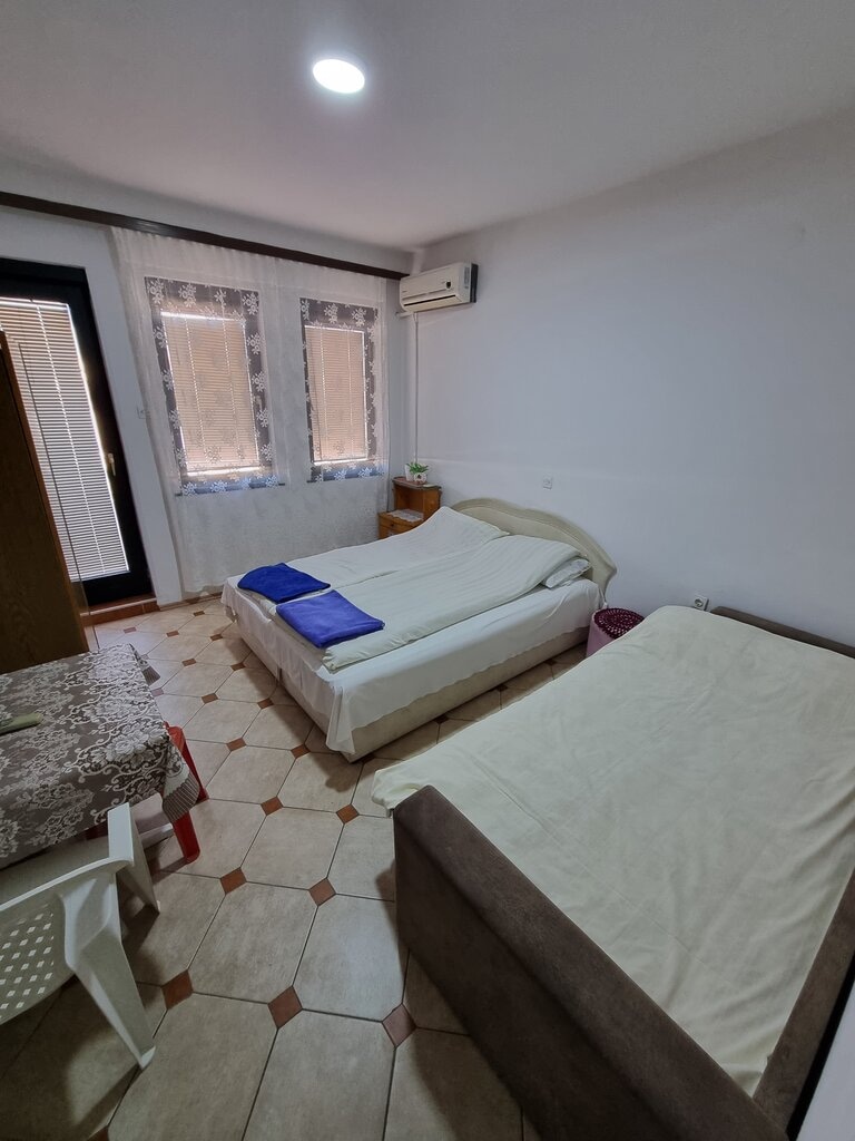 Objekat se nalazi na glavnom bulevaru u Ohridu i udaljen je 600 metara od centra i od jezera. Sve sobe u objektu nalaze se na drugom spratu zgrade. Sobe su za dve i četri osobe. Dvokrevetna soba poseduje francuski ležaj, dok soba za četri osobe poseduje francuski ležaj i sofu na razvačenje. Sve sobe poseduju zajedničku kuhinju u kojoj se nalazi poseban frižider za svaku od soba. Zajedničku zastakljenu terasu putnici mogu koristiti.