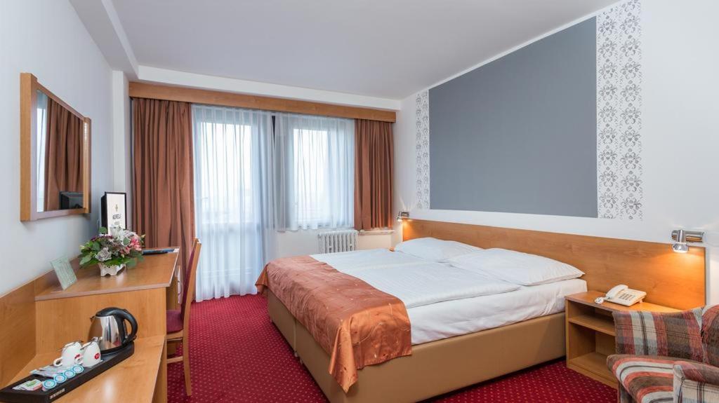 Hotel Globus je veoma dobro povezan sa centrom Praga. Nalazi se na udaljenosti od samo 600 od stanice metro stanice Roztili, odakle se za na 15 minuta (7 stanica) stiže do centralne stanice kod Nacionalnog muzeja. Recepcija hotela je gostima na raspolaganju non stop kao i menjačnica koja se nalazi u sklopu istog. U našoj ponudi su standardne dvokrevetne i trokrevetne sobe veličine oko 20m2, telefon, sat TV, centralna klima. Kupatila su opremljena toaletnim priborom. U restoranu hotela se služi doručak na bazi švedskog stola, a bar u lobiju u ponudi ima lake obroke i pića. U restoranu Terassa gostima su na raspolaganju probrana jela češke i internacionalne kuhinje, kao i raznovrstan izbor tradicionalnih piva. U okviru objekta nalazi se i letnji vrt, koji je smešten u neposrednoj blizini parka..