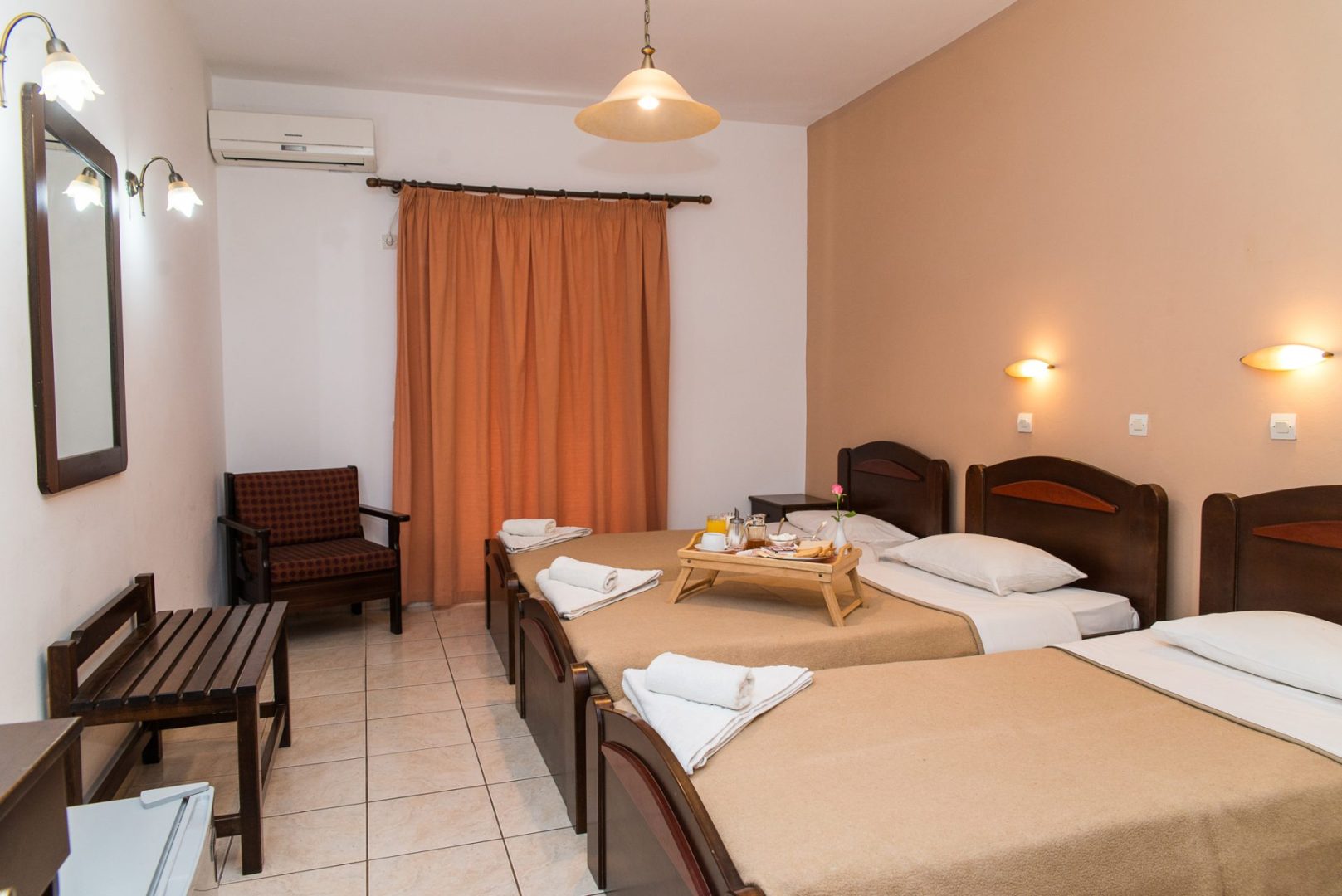 Nalazi se na 1,5 km od plaže i 100m od početka glavne ulice (800 m od klubova). U našoj ponudi su 1/2, 1/3 i 1/4 sobe.U četvorokrevetnim sobama su kreveti na sprat. Sve smeštajne jedinice u hotelu Perkes obuhvataju klima-uređaj (uz doplatu – 5-10€ po danu, cena podložna promeni) i frižider. Smeštajne jedinice sadrže sopstveno kupatilo. Sobe imaju balkon sa pogledom na planinu ili vrt. Dodatni kapaciteti hotela: recepcija 24h, bazen, sef (10€ na nedeljnom nivou), restoran, bar. Wifi uz doplatu od 1€ po danu. Grad Zakintos se nalazi na 9 km, a međunarodni aerodrom Zakintos se nalazi na 7 km od hotela. (Cene usluga su podložne promeni u skladu sa politikom smestaja).