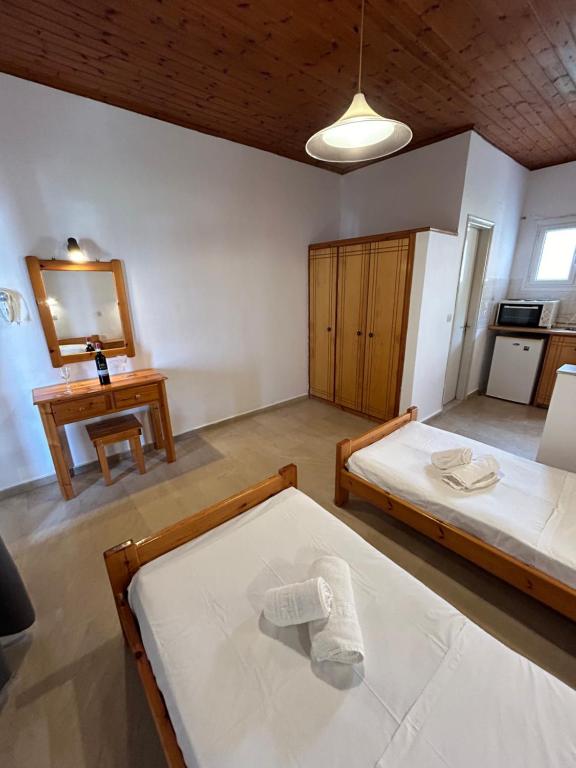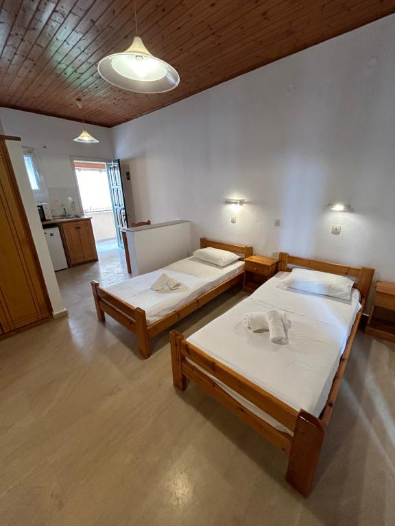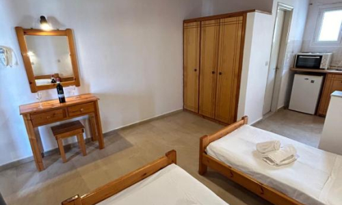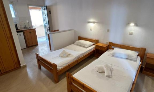 Kompleks Kavos Panorama nalazi se na 200 metara od plaže Kavos i na 300 metara od centra odmarališta. U ponudi su smeštajne jedinice za samostalan boravak sa panoramskim pogledom. Svi studiji imaju balkon (neki od studija imaju pogled na more) i čajnu kuhinju sa mini-rernom, kuvalom za vodu i frižiderom. Prostrane i jednostavno uređene smeštajne jedinice su klimatizovane (uz doplatu). Gosti mogu da koriste bazen hotela sa snek barom (uz doplatu), koji se nalazi odmah pored kompleksa. Prodavnice i restorane možete pronaći na svega 50 metara od obejekta Kavos Panorama. Strogo zabranjeno skakanje u bazenu! Usluga je na bazi najma.